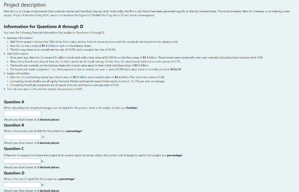 Solved Project Description New Arc Co Is A Large Chegg Com